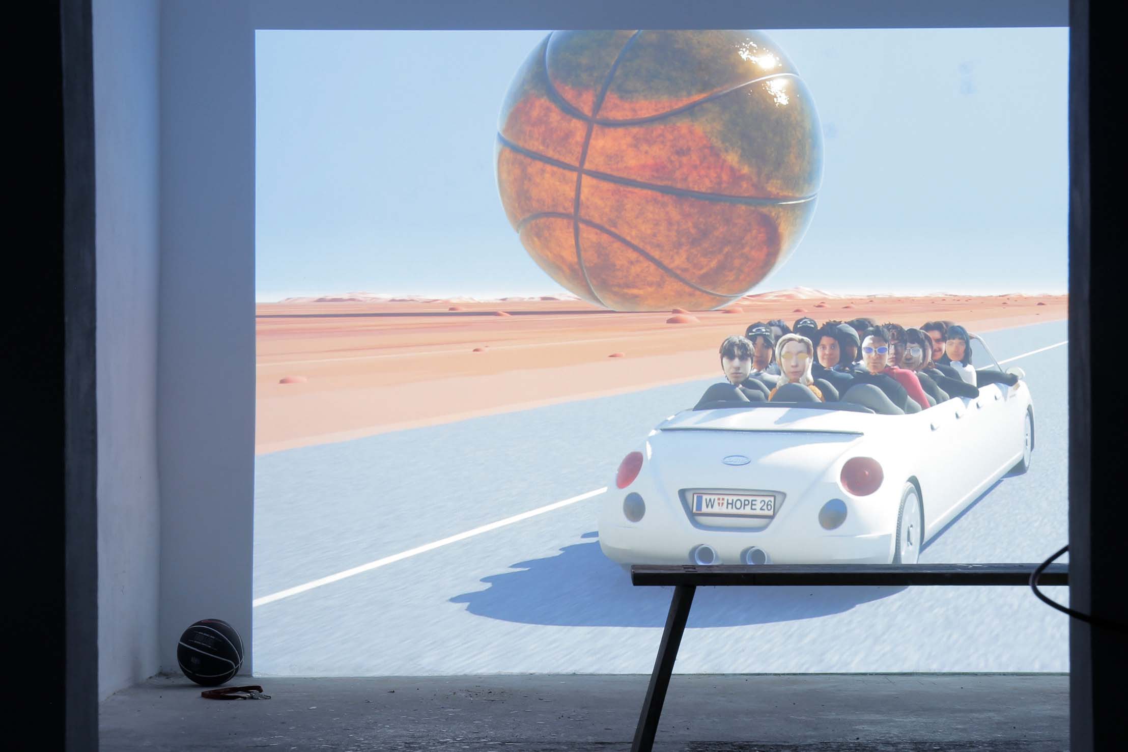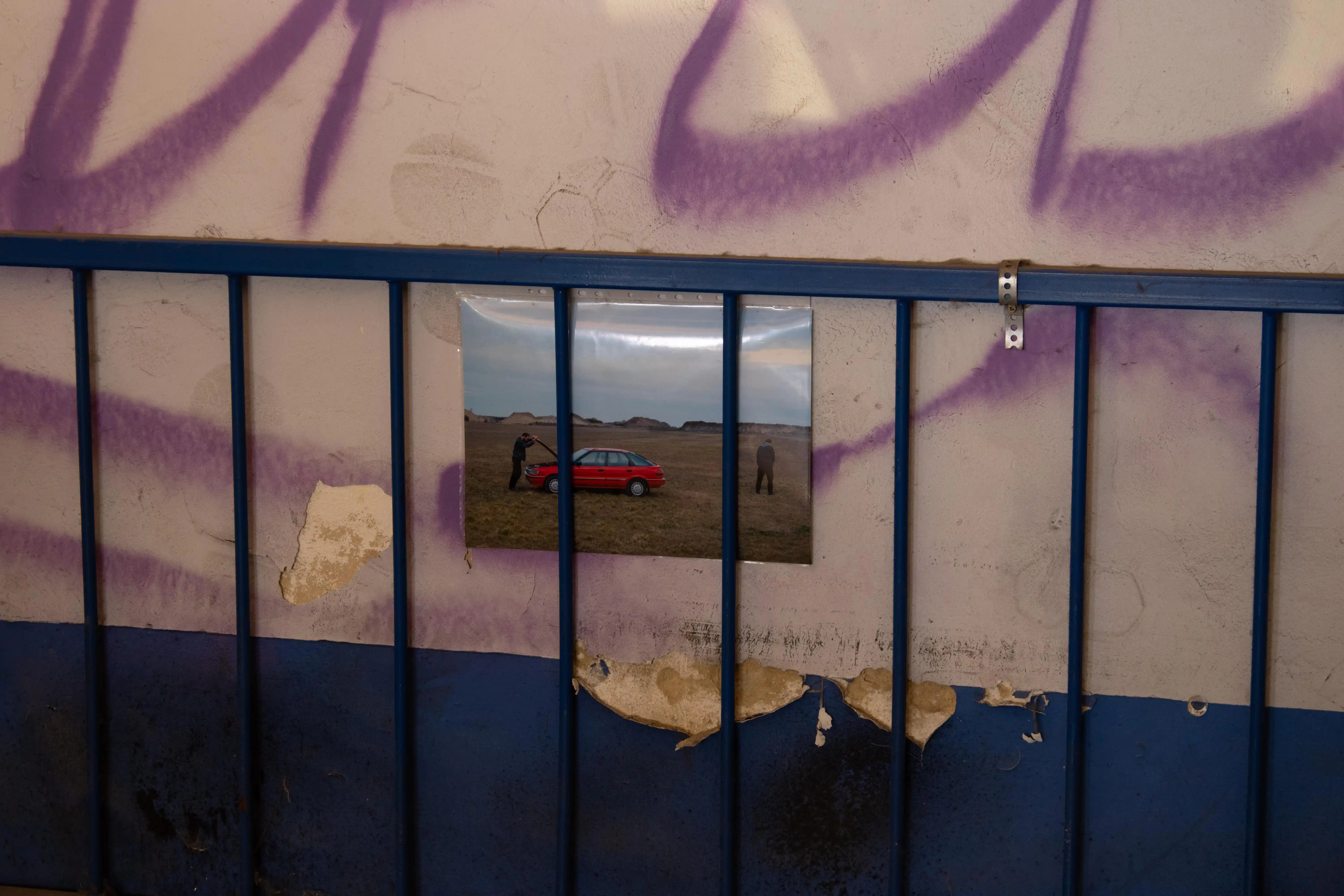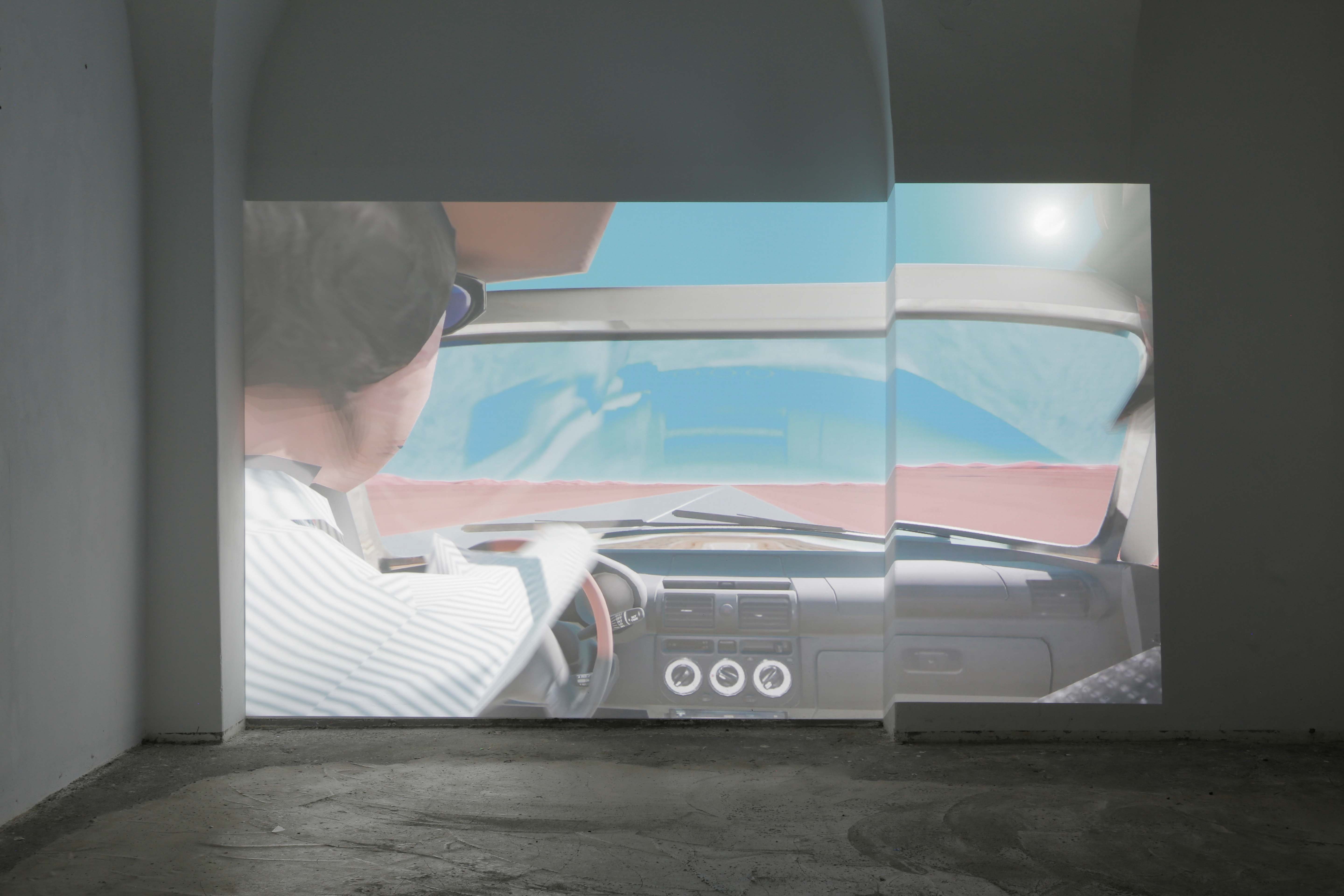 During the opening hours, a four-hour soundtrack played through small speakers, evoking the feeling of a car radio drifting through random stations — from pop and guided meditation to Ennio Morricone.