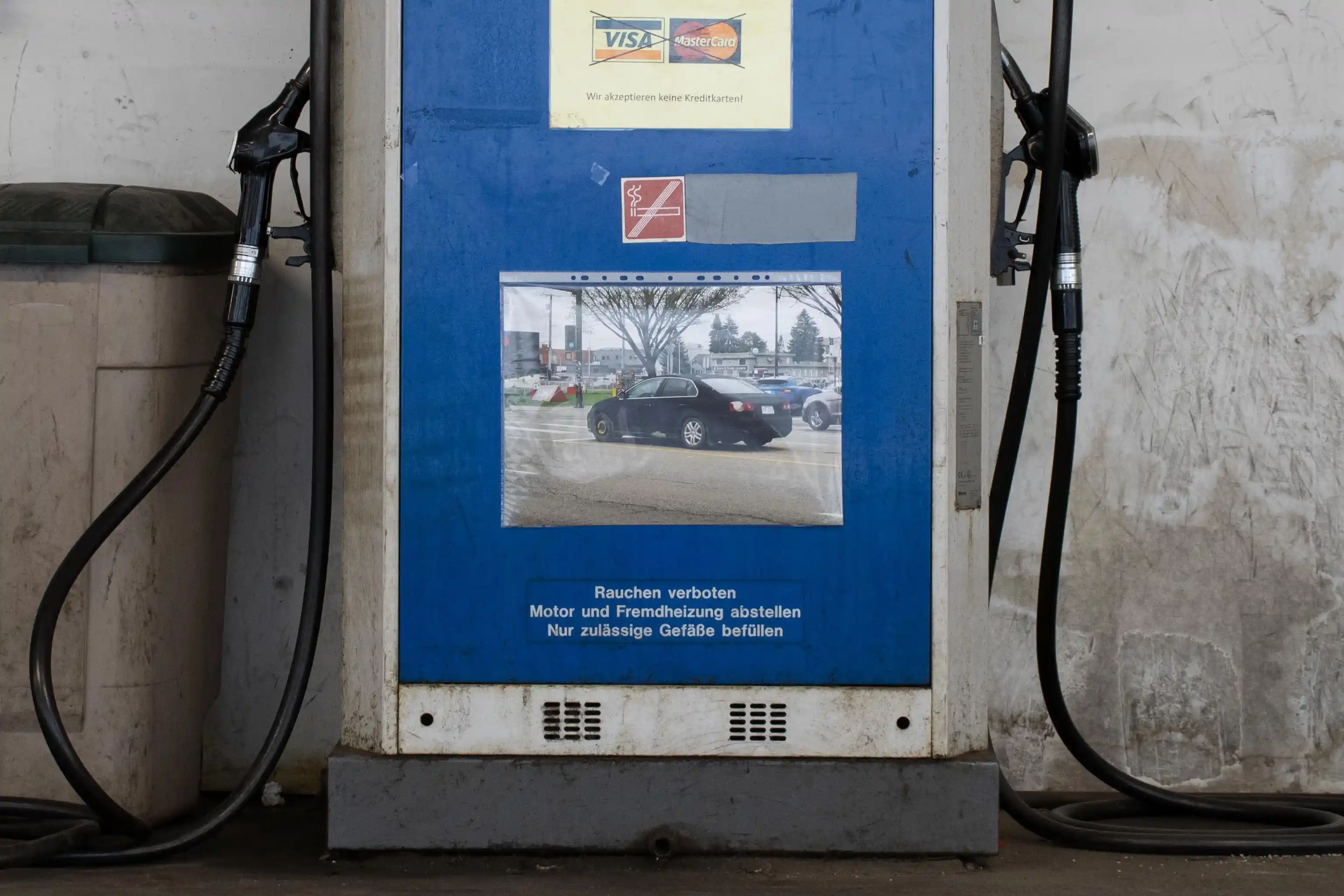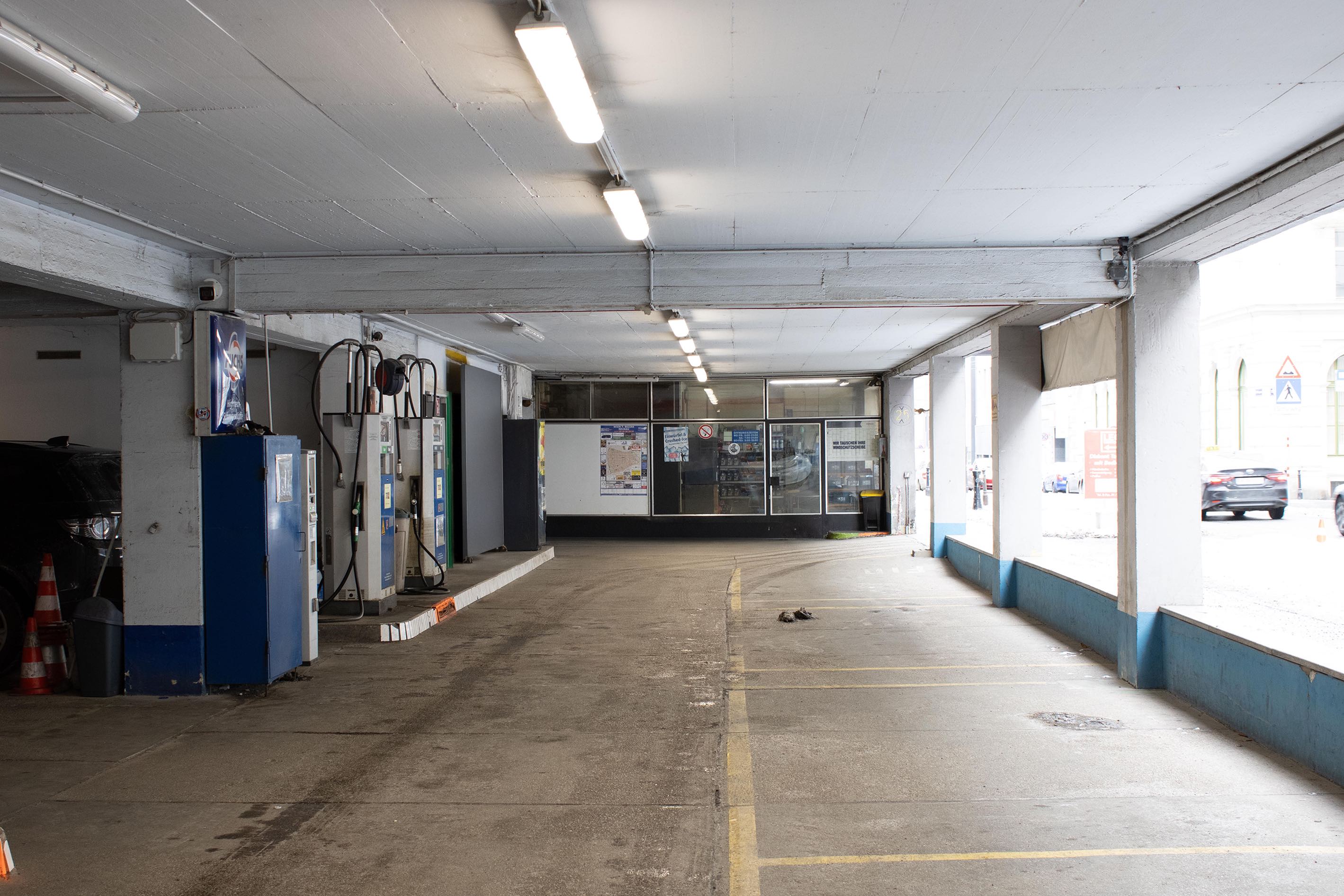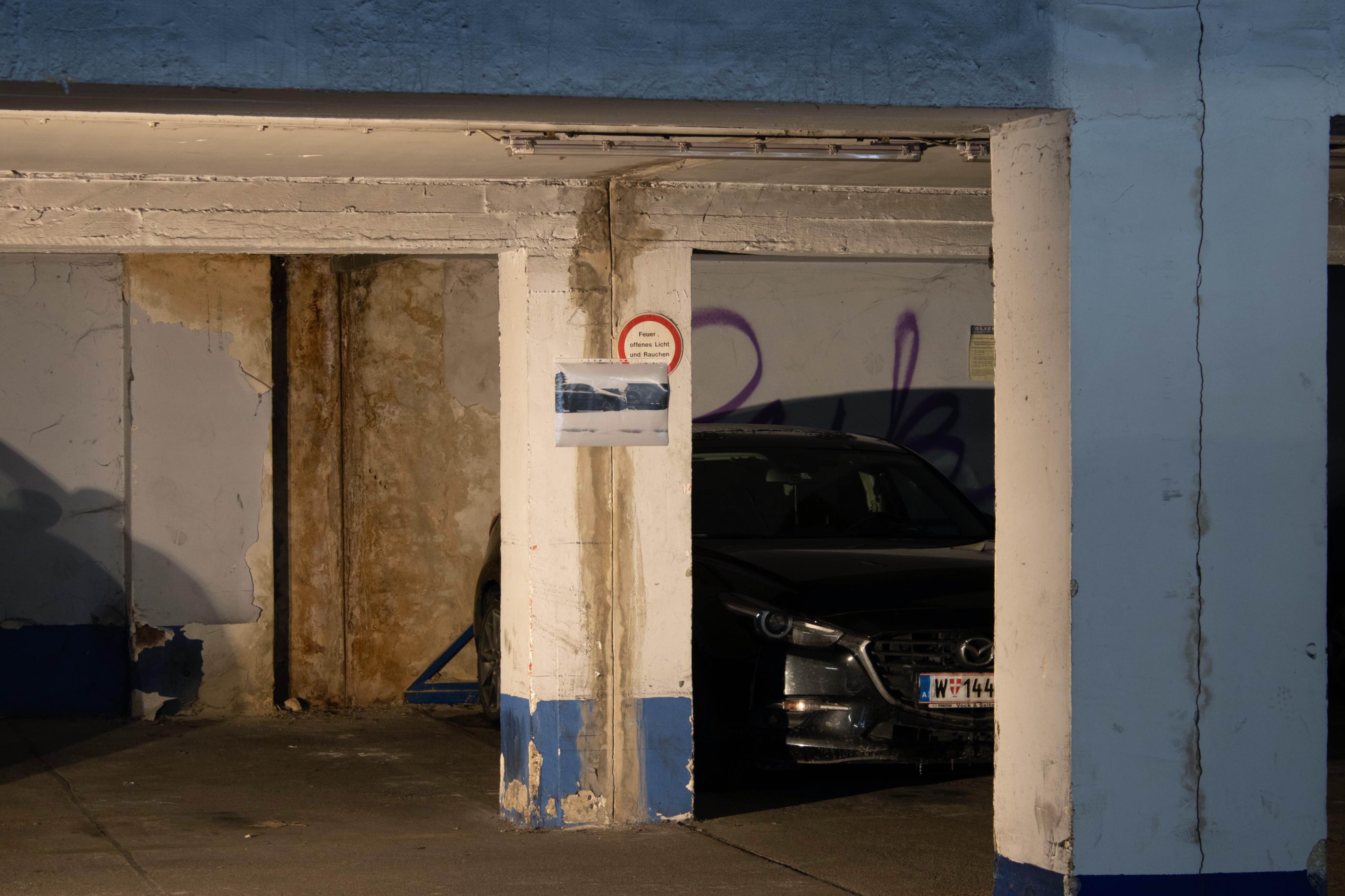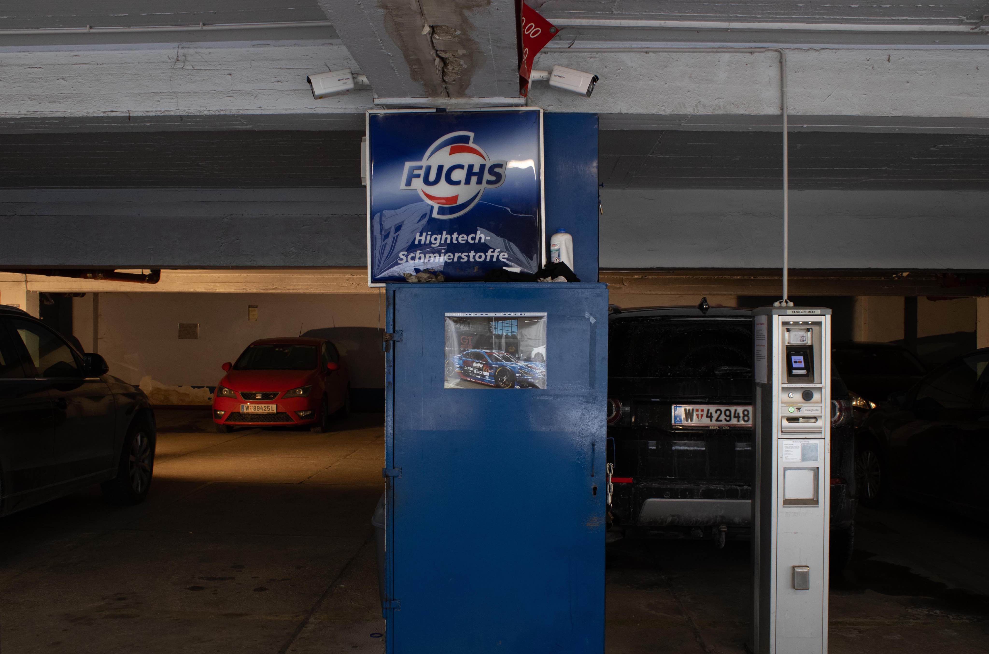 One Day presentation of 18 photos of cars at a running gasstation in Vienna.